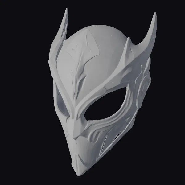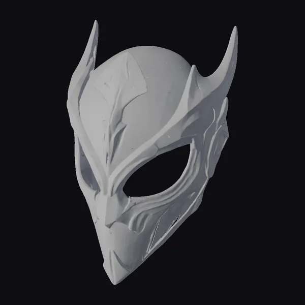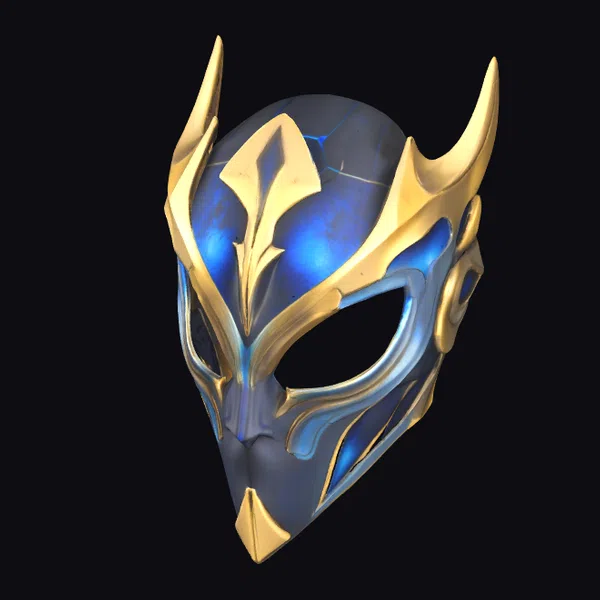 This cosmic mask boasts a mesmerizing blend of dark blue and gold, with the metallic sheen suggesting a fusion of advanced technology and ancient mystic craftsmanship. The gold accents form sharp, alien-like protrusions that frame the face, while the blue base glows with an inner light. The eye openings are shaped to resemble the gaze of a cosmic entity, adding to the mask’s enigmatic presence. Crafted with precision, this model showcases detailed textures that highlight the contrast between the cool, dark blue and the warm, golden elements. Ideal for projects that demand a touch of the extraterrestrial, such as sci-fi animations, games, or virtual reality experiences.