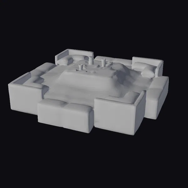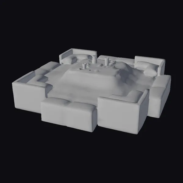Floating in the center of a room, this captivating game night setup invites you to linger over board games and good company. The model boasts a richly detailed, stylized design with a central, raised platform covered in a soft green fabric, perfect for displaying snacks and drinks. The platform is surrounded by eight leather-covered seating areas, each adorned with cushions that promise comfort during long gaming sessions. The entire setup is bordered by a lush, dark green carpet, adding a pop of color and texture to the scene. Crafted with attention to detail, this model is perfect for projects focused on interior design, gaming environments, or social spaces. Its unique blend of functionality and aesthetic appeal makes it an excellent choice for 3D artists and designers looking to create immersive, engaging scenes.
