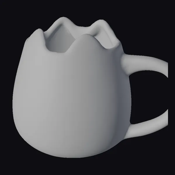 Detailed examination reveals a cracked, beige-colored mug with a stylized cat face design. The mug’s broken edge adds a touch of whimsy, while the brown markings on the face create a playful expression. The ceramic material and pastel color palette evoke a sense of nostalgia. Ideal for use in game environments, 3D printing projects, virtual reality experiences, animations, or as a design element in creative projects. The mug’s unique design makes it a standout prop for adding personality to digital scenes or physical creations.