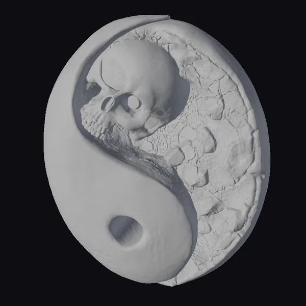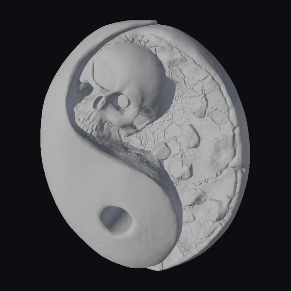 Intricately detailed and richly textured, this cracked skull yin yang model presents a striking visual paradox. The cracked stone texture, reminiscent of weathered rock, envelops a stylized skull nestled within the curved shape. The white and gray hues evoke a sense of eerie calm, inviting contemplation on the dualities of existence. Crafted with precision, this model showcases exceptional detail, from the subtle cracks to the skull’s delicate features. Ideal for use in various creative projects, such as games, 3D printing, VR/AR experiences, animations, and designs that demand a touch of the mysterious and unknown.