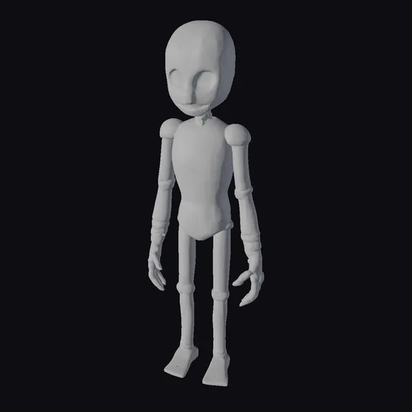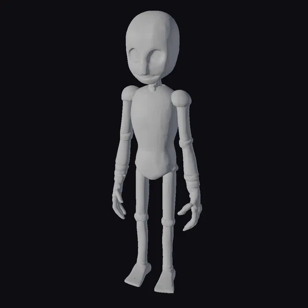 Standing tall with a fixed, unsettling smile, this life-sized wooden puppet appears to be suspended by frayed strings. Its head, devoid of hair, features deep cracks that extend down its face and body, emphasizing its fragile state. The dark, empty eye sockets contribute to the puppet’s eerie presence. The wooden texture, complete with visible cracks and joints, adds a layer of realism to its stylized form. This puppet model is perfect for projects requiring a creepy, atmospheric character, such as horror games, animations, or VR/AR experiences focused on dark, suspenseful narratives. Designers can also use it in 3D printing, architectural visualizations, or as a unique decorative piece.