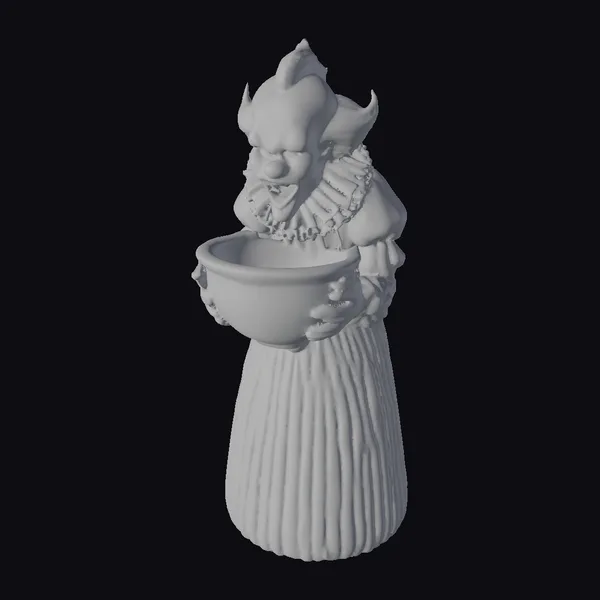 The Model “Creepy Clown Holding Bowl” is also available upon request in many other 3D formats, such as 3MF, BLEND, FBX, OBJ, USDZ and others, making it easy to integrate into your project.