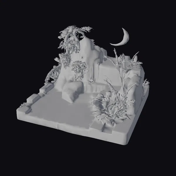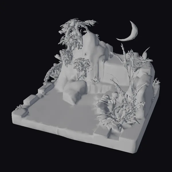 The Model “Crescent Moon Jungle Diorama” is also available upon request in many other 3D formats, such as 3MF, BLEND, FBX, OBJ, USDZ and others, making it easy to integrate into your project.