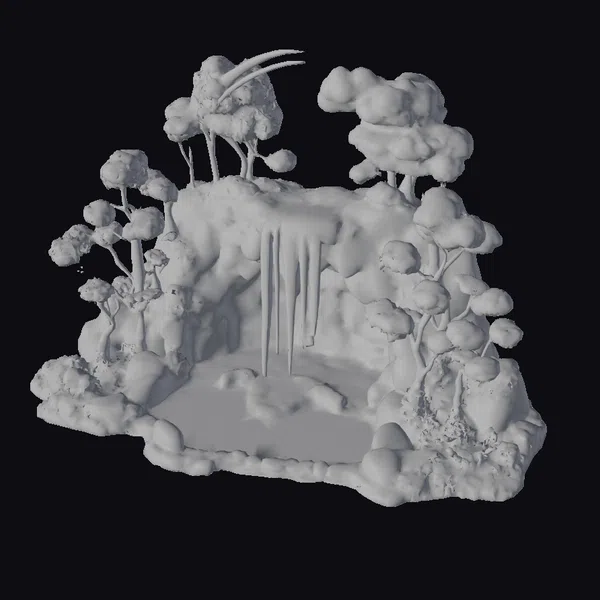 The Model “Crescent Moon Waterfall Diorama” is also available upon request in many other 3D formats, such as 3MF, BLEND, FBX, OBJ, USDZ and others, making it easy to integrate into your project.
