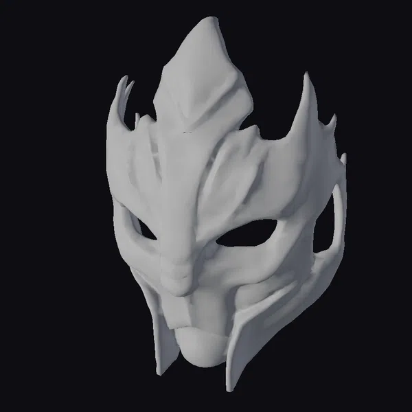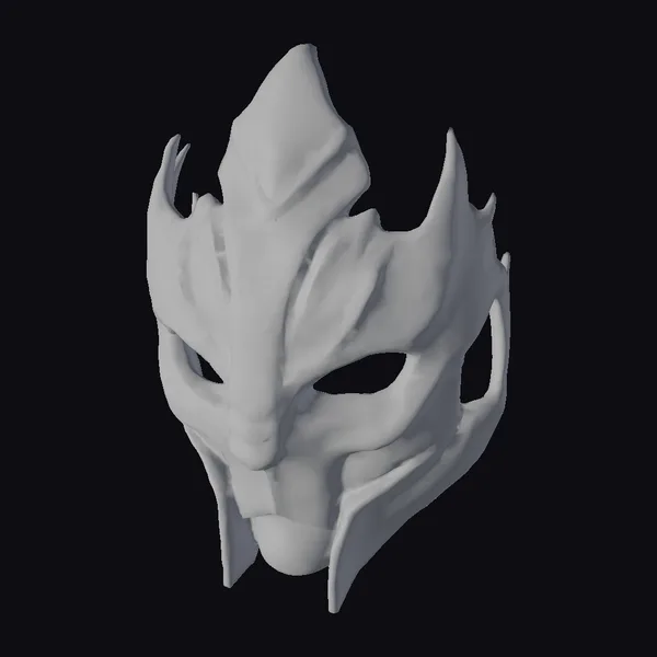 Perched atop an invisible face, this stylized mask commands attention with its sharp, flame-like protrusions and bold red accents that slice through the dominant white hue. The abstract design seems to shift and dance in the light, as if the very essence of fire has been captured in a static form. Crafted with meticulous detail, the mask’s texture suggests a blend of smooth and rough surfaces, inviting the eye to explore its every nook. Whether destined for a game, animation, or VR experience, this mask promises to imbue any character with an air of mystery and formidable presence. Its unique blend of sci-fi and fantasy elements makes it a versatile asset for creators looking to push boundaries.