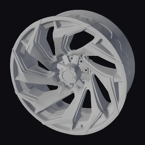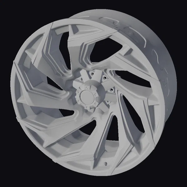 The Crimson Vortex Rim showcases a meticulously crafted design, featuring a predominantly black base that provides a sleek, neutral canvas for bursts of vibrant red and metallic silver. The wheel’s surface is a marvel of geometric patterns, with sharp angles and smooth curves that interplay to create a sense of motion. At its center, a bold red logo stands out against the black hub, adding a focal point to the overall design. The rim’s glossy finish enhances its reflective qualities, making it seem as though it’s been freshly polished. This wheel is perfect for those looking to elevate their vehicle’s aesthetic, whether for a game, 3D animation, architectural visualization, or product design. Its detailed texture and precise proportions ensure a realistic appearance, making it suitable for high-end projects requiring top-notch visual fidelity.