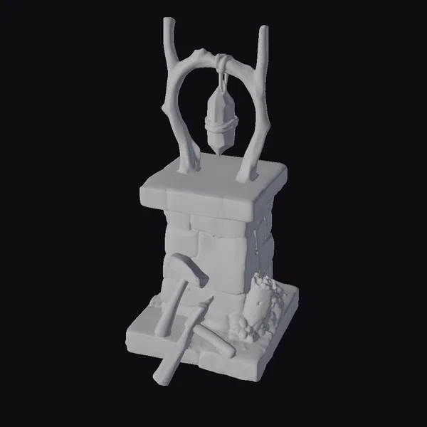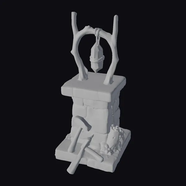 This intricately detailed stone altar stands adorned with a crystal suspended in a wooden frame, suggesting a site of mystic ritual or ancient ceremony. The base of the altar is littered with tools, adding to the sense of a sacred or forbidden practice. The textures of the stone and wood are deeply rendered, inviting the viewer into a world of fantasy and mystery. Ideal for use in games, 3D printing, VR/AR experiences, or as a decorative piece in animation and design projects.
