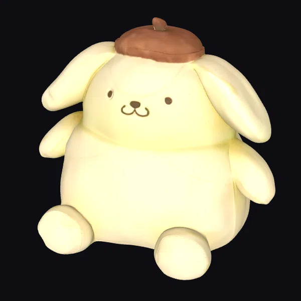Rendered in a delightful, stylized form, this plush toy dog sits comfortably with its legs folded under its body, exuding a sense of warmth and friendliness. The dog’s body is covered in a soft, yellow fur, while its face is adorned with a simple yet charming smile and nose. A brown acorn hat sits atop its head, adding a touch of whimsy to its already endearing appearance. The model showcases excellent texture and detail, from the subtle folds of the hat to the plushness of its fur. Ideal for use in games, animations, or as a decorative element, this model is sure to bring a smile to anyone’s face.