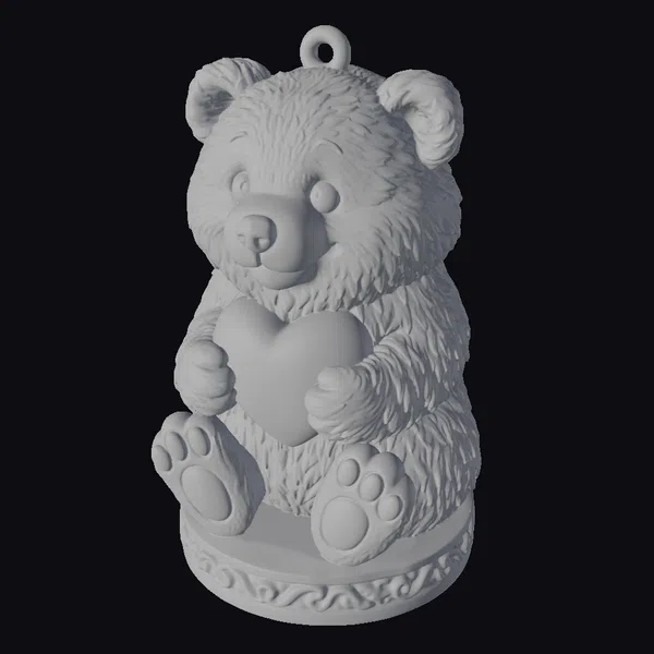 This captivating teddy bear ornament is meticulously detailed, from the soft, golden fur texture to the delicate design on its base. The bear sits in a relaxed pose, with one leg tucked under the other, holding a bright red heart close to its chest. Its large, shiny eyes and gentle smile add to its charm. The ornament’s base features an intricate pattern, adding an extra layer of visual appeal. Ideal for use in games, 3D printing, virtual reality, animation, and design projects, this model brings a touch of warmth and personality to any scene.