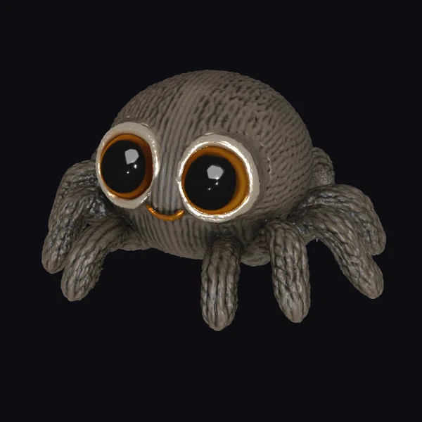 Perched on its eight textured legs, this adorable yarn spider exudes a sense of gentle playfulness, its large, round eyes gleaming with a warm, golden light. The spider’s body and legs are intricately detailed to mimic the look of yarn, adding a tactile quality to its digital form. The model’s pose, with legs splayed out in a relaxed manner, invites the viewer to imagine it nestled in a cozy corner or peeking out from behind a decorative item. Its applications are as varied as they are creative: from enhancing a digital environment or game with a touch of personality, to serving as a charming centerpiece in animation or virtual reality projects, to simply being a delightful collectible in 3D form.