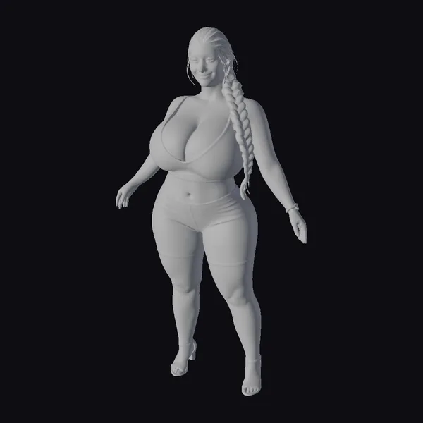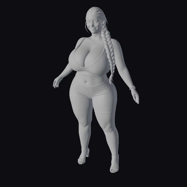 Detailed from head to toe, this 3D model showcases a curvy woman with a radiant presence. Her mint green crop top and shorts are meticulously textured, along with her brown high heels and accessories like her bracelet. The long braid adds a touch of elegance to her overall appearance. The model’s pose is dynamic, with her arms relaxed by her sides, inviting the viewer to imagine her in various scenarios. Whether for animation, game development, virtual reality, or design projects, she can be the centerpiece. Her realistic style ensures she blends seamlessly into any environment, from fashion showcases to narrative-driven scenes.