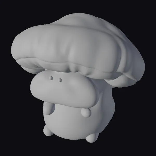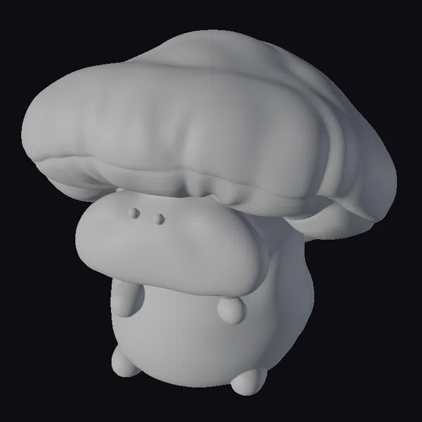 Deep in a fantastical forest, a radiant mushroom cap crowns a chubby, cheerful pig body, creating a heartwarming character that’s sure to capture hearts. The mushroom’s cap is a warm, burnt orange with intricate texture, while the pig’s body is a soft, creamy white with rosy cheeks and shiny black eyes. The model features a smooth, rounded body with small legs, giving it a playful stance. The lighting highlights the model’s plush texture, making it look like a cuddly toy. This charming creature is perfect for games, animation, or design projects that require a touch of whimsy and fun. Its cute expression and adorable details make it an excellent choice for 3D printing, virtual reality experiences, or as a decorative element in digital environments.