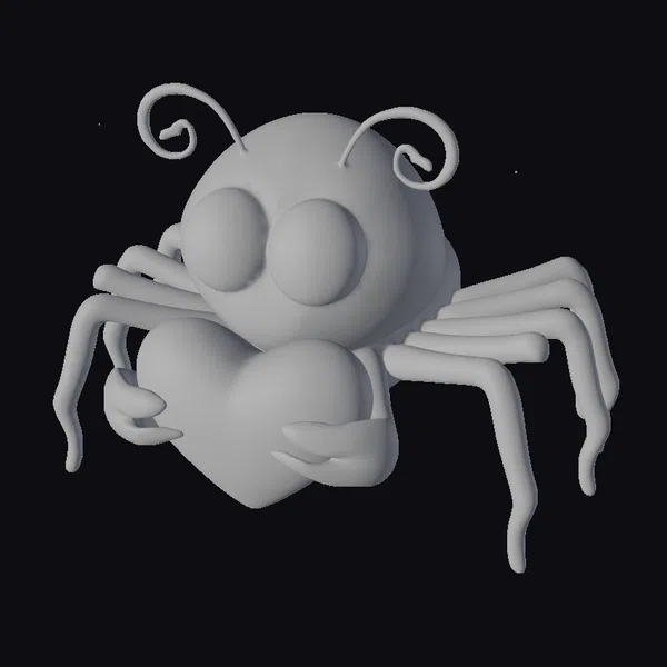Gazing at this charming pink spider, you’ll notice its endearing facial expression, complete with large, shiny eyes and a smiling mouth. The spider’s curly antennae add to its comical appearance, while its pink and black striped legs give it a lively, dynamic feel. The spider is tenderly holding a pink heart, symbolizing love and affection. This model is perfect for use in various creative projects, such as animations, games, or designs for Valentine’s Day. Its cute and playful style is sure to capture the hearts of your audience.