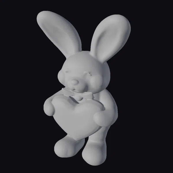 Detailed with love, this plushie model showcases a white rabbit with pink inner ears, cheeks, and nose, complemented by shiny black eyes. The rabbit wears a delicate pink bow tie and grasps a large pink heart adorned with ‘love’ in white stitching. Its pose and expression exude warmth and affection. Ideal for use in games, animations, or as a 3D printable model for Valentine’s Day projects, this plushie is sure to capture hearts. Its stylized features make it versatile for various creative applications.