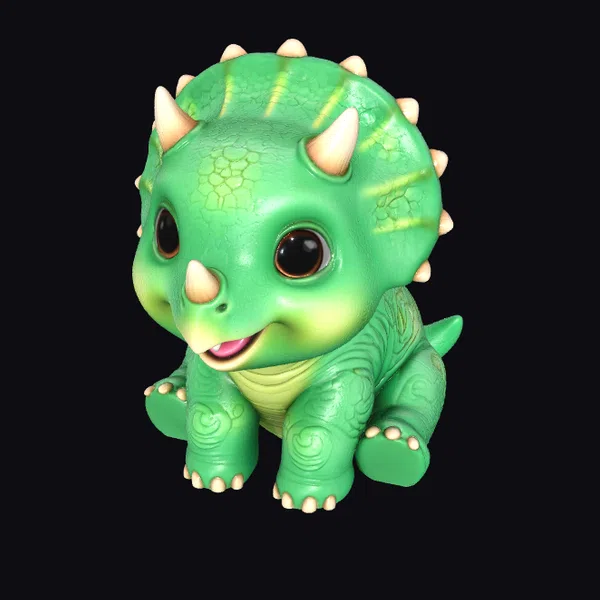 Squeezing into your heart with its adorable smile and spiky frill, this little triceratops is ready to stomp its way into your projects. Its vibrant green skin and creamy accents make it a delightful addition to any scene.