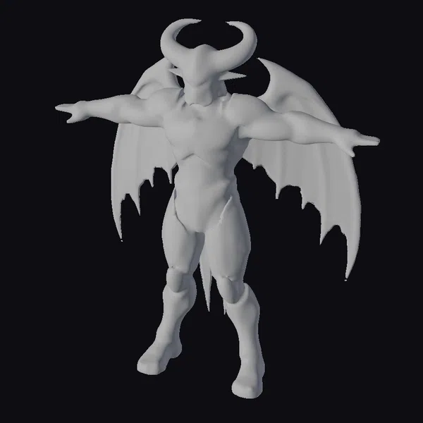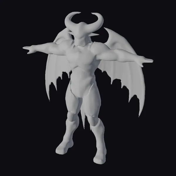 Gazing upon this cyberpunk demoness, her intricate design unfolds with precision. Her metallic body, a mesmerizing dance of gunmetal gray and neon blue, seems to shift in the light. The T-pose highlights her imposing figure, complete with sharp, curved horns that reach towards the sky and expansive, bat-like wings that appear ready to unfurl. Her physique is a blend of human and machine, suggesting a being of immense power and agility. The neon blue accents not only add a pop of color but also suggest a complex network of circuitry beneath her surface. This model is perfect for projects that demand a fusion of fantasy and technology, such as video games, animations, or virtual reality experiences.