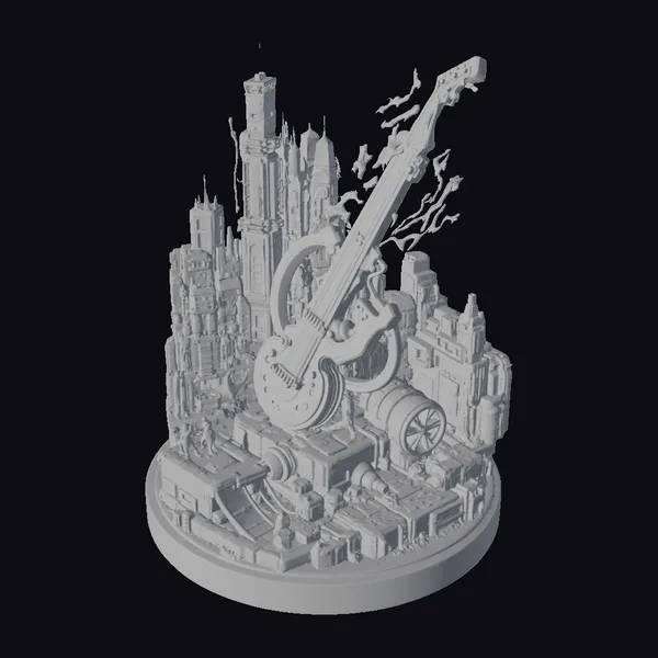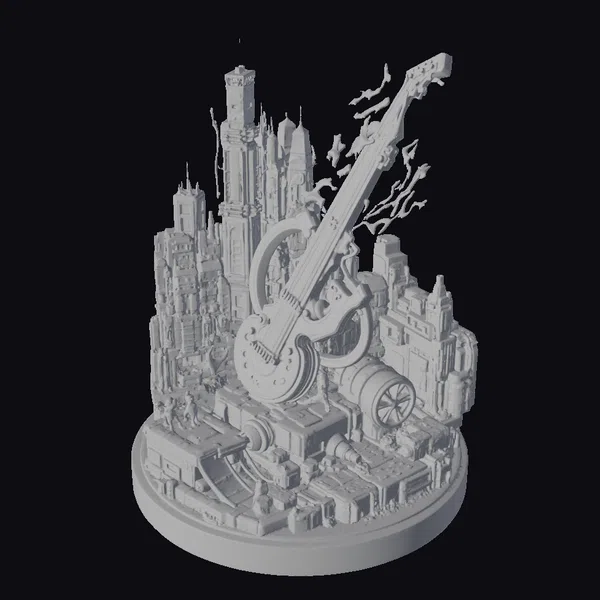 Perched atop a mechanical base, the cyberpunk electric cello takes center stage against a stunning city skyline. The instrument’s golden body gleams with a warm, sun-kissed patina, while purple energy crackles from its strings, infusing the surrounding environment with an otherworldly vibe. The cello’s sleek, aerodynamic design seems to defy gravity, as if suspended in mid-air. Its mechanical components, such as the tuning pegs and bridge, are meticulously detailed, adding to the overall sense of realism. This 3D model is perfect for games, animation, or design projects seeking a unique, futuristic instrument that embodies the fusion of music and technology.
