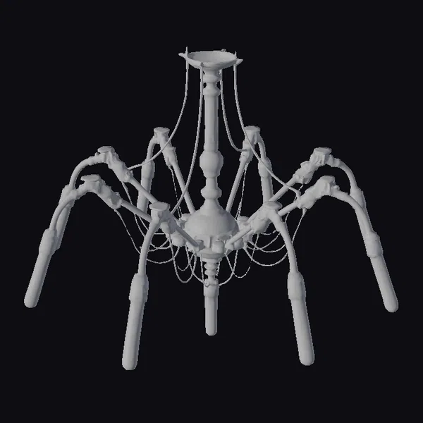 Crafted with meticulous attention to detail, this cyberpunk chandelier boasts a complex assembly of metallic arms and wires, culminating in a symmetrical design that exudes a sense of industrial futurism. The chandelier’s central body, adorned with a series of rounded, metallic components, gives rise to multiple arms that curve outward, each terminating in a glowing neon light tube. Exposed wires and circuit nodes add to the fixture’s utilitarian aesthetic, suggesting a blend of high-tech functionality and raw, unrefined energy. This model is well-suited for use in games, 3D print projects, VR/AR experiences, animations, and designs that require a touch of cyberpunk flair.