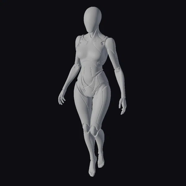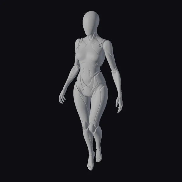Standing tall with an air of futuristic elegance, this cyborg woman boasts a shiny metallic body that reflects light, accentuating her robotic nature. Her face is smooth and featureless, adding to her enigmatic presence. The model’s body is designed with a focus on mobility, evident from her articulated joints which allow for a variety of poses. The lack of facial features shifts the focus to her physique and the interplay of light on her metallic surface. Ideal for projects requiring a futuristic, high-tech character, such as sci-fi animations, video games, or conceptual designs. The model’s versatility makes it suitable for both static and dynamic scenes.