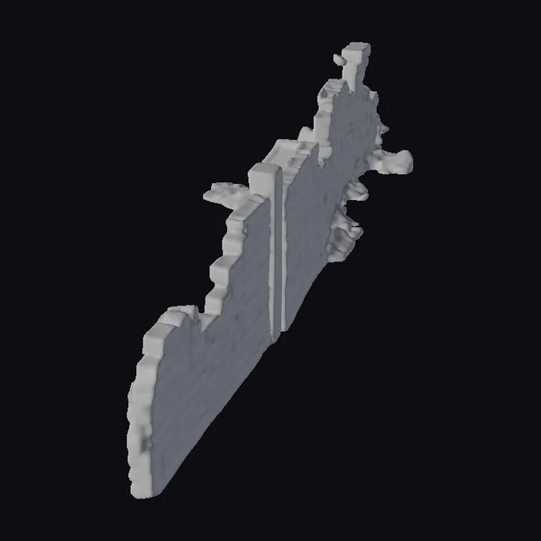 Crafted with meticulous attention to detail, this 3D model of a damaged Egyptian stone wall captures the essence of a structure ravaged by war. The wall’s 20-foot length is strewn with missing bricks, uneven surfaces, and a general air of disrepair. The Egyptian stone texture is richly detailed, with a warm, earthy tone that suggests age and history. The model’s pose, angled dynamically, highlights the wall’s damaged state, with chunks missing from its top and sides. The lighting accentuates the texture, bringing out the depth of the stone’s natural patterns. Ideal for use in historical dramas, video games, architectural visualizations, or any project requiring a sense of aged, war-torn environments.