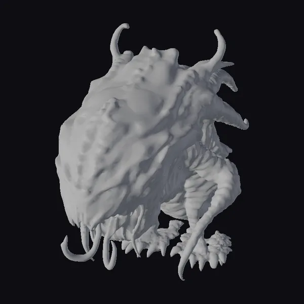 This unsettling entity appears to be crafted from a living, breathing mass of dark biomass. The creature’s surface constantly shifts, revealing glimpses of its inner workings. Two glowing purple orbs serve as its eyes, casting an otherworldly glow. Jagged, twisted limbs protrude from its body, giving it a sense of unpredictable movement. The creature’s very presence seems to draw you in, inviting you to explore the depths of its dark, biomechanical form. Ideal for use in horror-themed games, animations, or 3D prints, this model is sure to send shivers down the spine of anyone who encounters it.