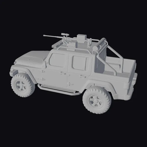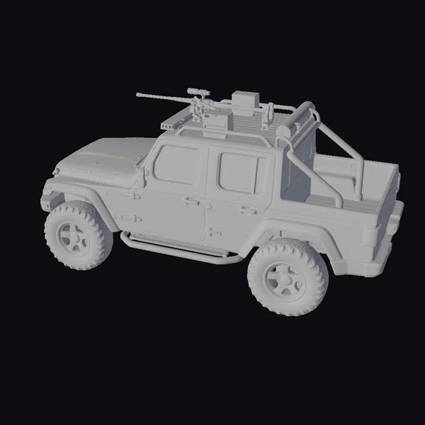 Detailed with precision, this dark brown camo jeep features a rugged design, complete with a mini-gun mounted on top and a bold ‘GLADIATOR’ label on the hood. The vehicle’s camo pattern weaves together shades of brown and tan, giving it a natural, earthy appearance. Its combat-ready stance and black accents evoke a sense of power and resilience. Ideal for use in games, 3D printing, VR/AR experiences, animation, and design projects, this model brings a touch of military might to any project.