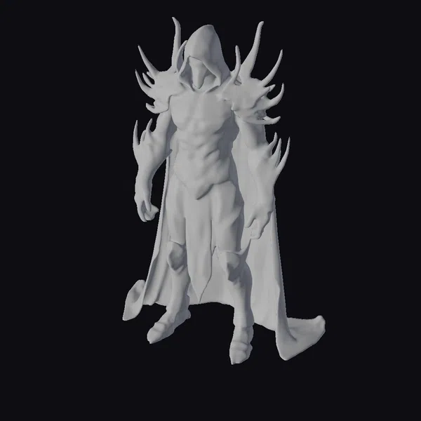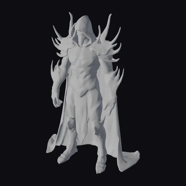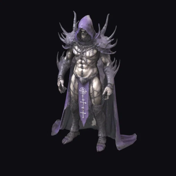 Standing tall with a commanding presence, this dark death knight boasts a highly detailed mesh and textures that bring to life a creature of war and chaos. The figure’s muscular build is accentuated by its hooded cape and armor, which are rich in detail and texture. The purple cape flows dynamically, with a white symbol running down its center, adding a touch of mystique to the overall design. The death knight’s pose suggests a readiness for battle, with its hands positioned for action. The level of detail in this model makes it suitable for a variety of applications, including games, 3D printing, VR/AR experiences, animation, and design projects. Its dark, gothic style is sure to add depth and intrigue to any scene.
