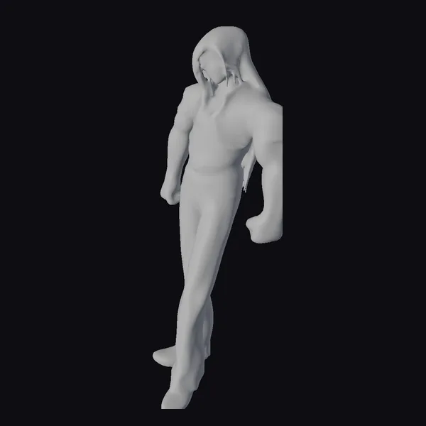 Standing with a subtle lean to one side, this dark elf warrior model showcases intricate details such as textured clothing and defined musculature. His facial features are finely tuned, with high cheekbones and piercing eyes that seem to bore into the distance. The model is posed in a way that highlights his dynamic physique, making him an excellent choice for projects requiring a strong, fantastical character. Suitable for use in games, animations, or 3D printing, this model can bring depth and intrigue to any fantasy setting.
