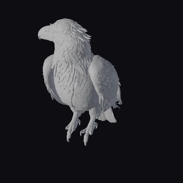 In a majestic pose, the creature showcases its meticulously detailed feathers, each strand appearing to catch the light and shimmer with an otherworldly glow. The bird’s body is robust, with powerful legs ending in sharp, curved talons, while its head is held high, surveying its surroundings with a keen eye. The stylized representation brings an air of fantasy to the model, making it an ideal choice for projects requiring a touch of magic or mystery. Its applications range from animation and game development to architectural visualization and conceptual art, where a mythical or symbolic element is desired.
