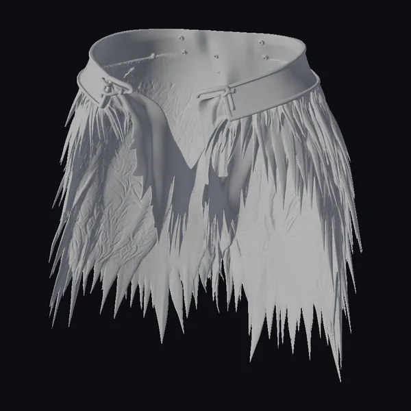 Positioned dramatically, the skirt’s waistband appears worn, as if battle-tested, with fringes that cascade like the night sky. The leather’s texture hints at age and resilience, while the metallic accents gleam with a subtle, otherworldly sheen. Ideal for projects that demand a touch of the mystical, this skirt promises to transport characters to realms both legendary and unknown. Whether for game environments, animations, or conceptual art, its presence commands attention and whispers tales of forgotten heroes.