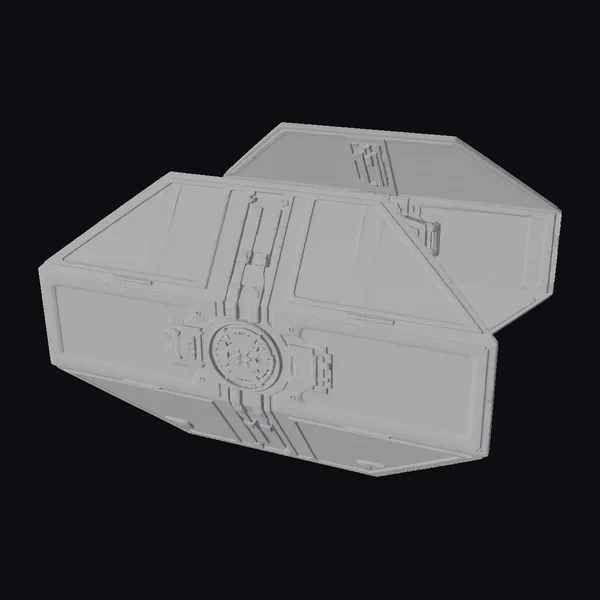 Positioned at a dynamic angle, the dark gray metal box showcases its intricate details, from the central locking mechanism to the red accents tracing along its edges. The box’s surface is adorned with a mix of flat and raised panels, giving it a utilitarian yet futuristic appearance. Its design suggests a high-tech container, possibly used for storing advanced equipment or sensitive data in a sci-fi setting. The model’s level of detail, including the textures and the mechanized look, makes it suitable for various applications such as game development, 3D printing, virtual reality, and animation. The box’s robust and industrial look could also make it a great fit for design projects requiring a futuristic or industrial theme.