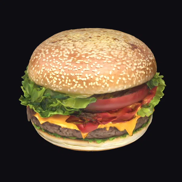 Rendered in stunning detail, this cheeseburger model boasts a golden-brown sesame seed bun, adorned with a slice of melted cheese, a beef patty, crisp lettuce leaves, and a slice of fresh tomato. The textures and lighting create a tantalizing effect, making it perfect for use in restaurant menus, advertisements, or even 3D animations. Whether you’re a foodie or a designer, this model is sure to satisfy your creative cravings.