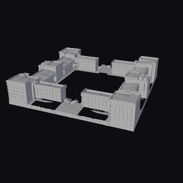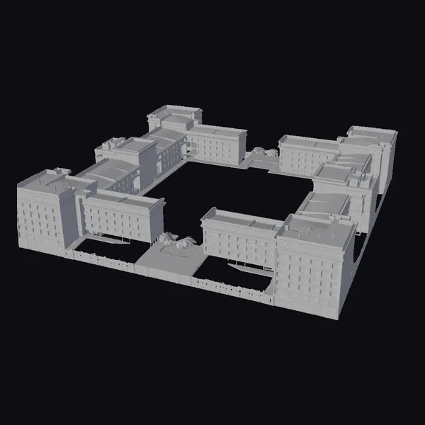 Perched in the desert’s heart, this meticulously crafted 3D model of a campus aerial quadrangle presents a symphony of architectural elegance. The complex is composed of multiple buildings, each adorned with clean lines, rectangular windows, and flat roofs punctuated by solar panels. The beige and tan hues blend seamlessly with the arid surroundings, while the open central plaza invites a sense of community and interaction. Crafted with precision, this model excels in various applications, including game development, architectural visualization, and film production, offering a versatile and captivating setting for creators.