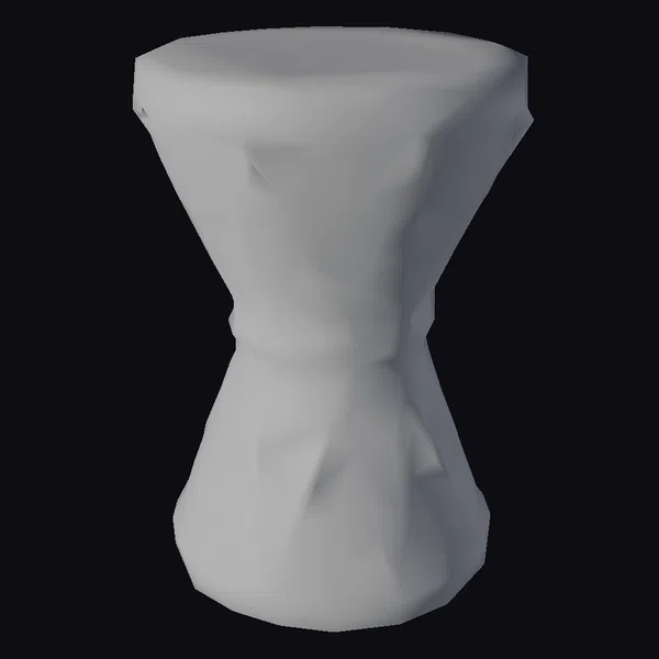In exquisite detail, the desert drum’s wooden body tapers from a wider top to a narrower base, adorned with a complex pattern of interwoven brown and yellow ropes. The drumhead, crafted from rich, textured leather, sits atop the wooden body, bordered by a smooth, cream-colored rim. A sturdy braided rope encircles the drum’s middle, adding a pop of texture and visual interest. As light dances across its surface, the drum’s natural materials seem to glow with an inner warmth. Whether used in games, 3D printing, VR/AR experiences, animation, or design projects, this desert drum is sure to transport audiences to a world of rhythmic enchantment.