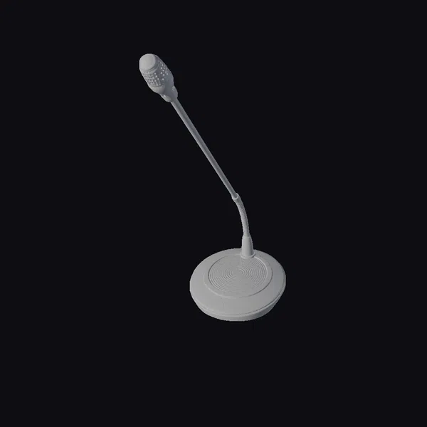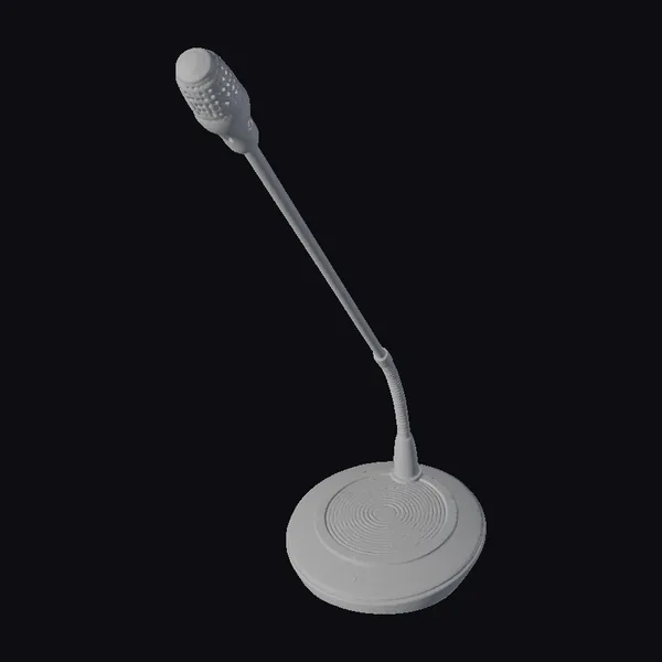 Positioned at a dynamic angle, the microphone’s head points assertively upwards, as if awaiting the next powerful orator. The textured surface of the mic and its stand suggests durability and a no-nonsense approach to capturing clear audio. With its robust base and slender neck, this model exudes professionalism, suitable for settings ranging from conference halls to recording studios. Designers and content creators will appreciate the detailed realism, making it perfect for 3D environments, animations, or simulations. Whether for a game, VR experience, or architectural visualization, this microphone model brings authenticity to any scene.