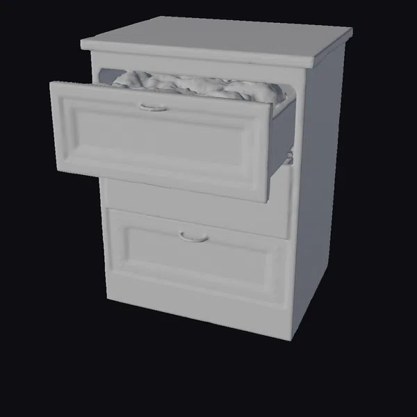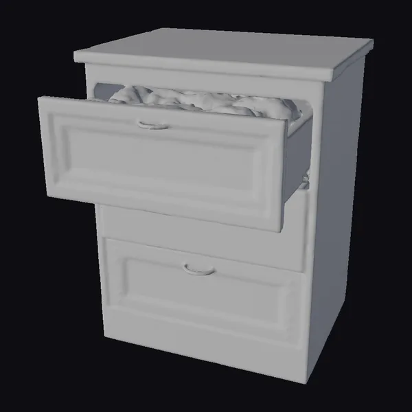 Positioned at an inviting angle, the cabinet’s slightly distressed appearance adds a touch of vintage allure to any setting. The top drawer, pulled out to showcase its interior, displays a row of shoes nestled within. Constructed from high-quality wood, the piece boasts a sturdy build and smooth drawer operation. Its clean lines and minimalist design ensure it blends seamlessly into various decors, from modern homes to quaint, country-style settings. Ideal for those seeking a functional piece with character, this cabinet can be used in 3D modeling for interior design projects, games, or animation, offering a realistic and detailed asset for creators.