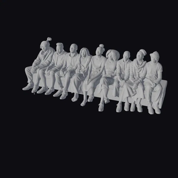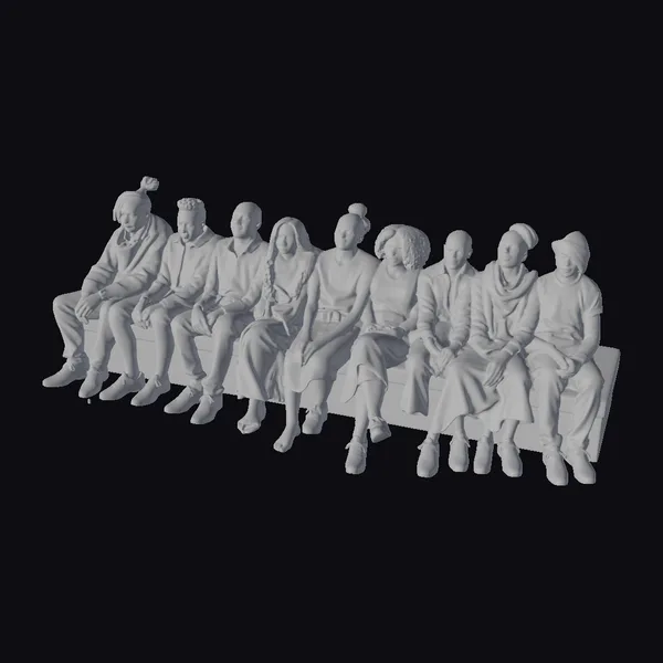 The Model “Diverse Group on Bench” is also available upon request in many other 3D formats, such as 3MF, BLEND, FBX, OBJ, USDZ and others, making it easy to integrate into your project.