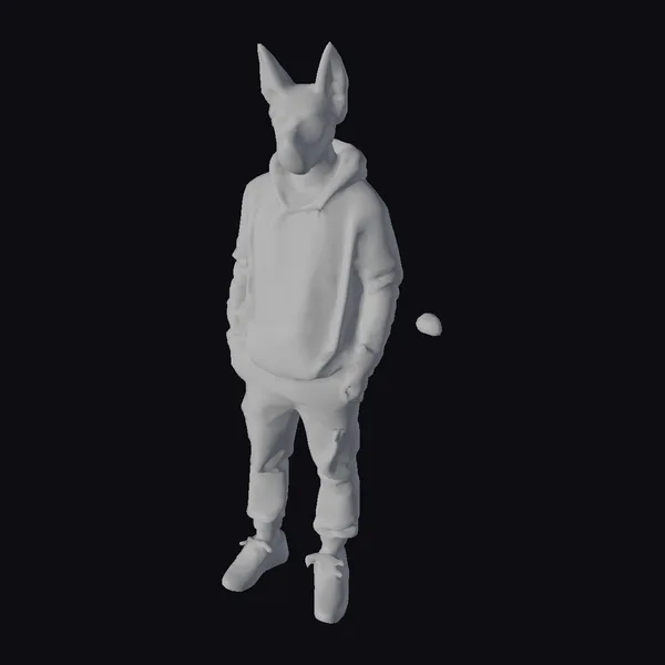 The Model “Dog Man in Red Hoodie” is also available upon request in many other 3D formats, such as 3MF, BLEND, FBX, OBJ, USDZ and others, making it easy to integrate into your project.