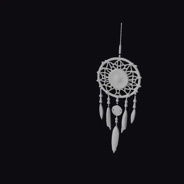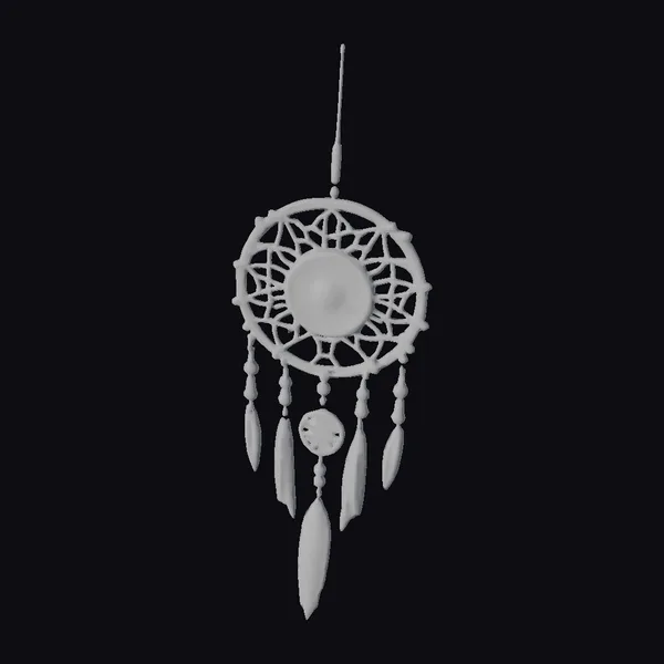 In a delicate pose, the dreamcatcher hangs with its intricate web-like pattern prominently displayed. The circular frame, from which numerous feathers and beads dangle, showcases a stylized yin yang symbol at its core. The texture of the web and the smoothness of the beads are meticulously detailed, inviting the viewer to appreciate the craftsmanship. The feathers, varying in length, add a dynamic element to the otherwise static piece. This model is perfect for projects requiring a touch of mysticism or bohemian flair, such as animations, games, or virtual environments focused on spirituality or cultural exploration.