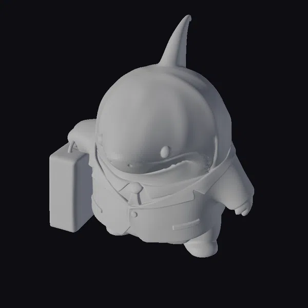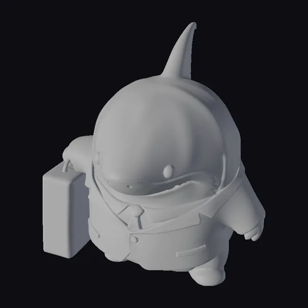 Detailed with a radiant smile, this dressed shark boasts a dynamic pose, complete with a briefcase in hand. The textures are smooth and inviting, with a clear emphasis on the shark’s facial features and accessories. The shark’s proportions are well-balanced, with a fittingly large head and a suit that seems tailored to its fins. The lighting highlights the shark’s curves and the briefcase’s sleek surface. Ideal for projects requiring a touch of whimsy, such as animations, games, or even educational materials. The model’s unique blend of professionalism and playfulness ensures it stands out.