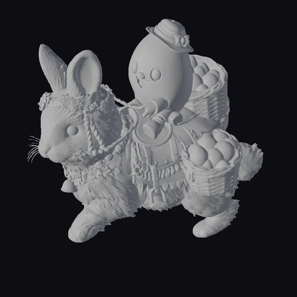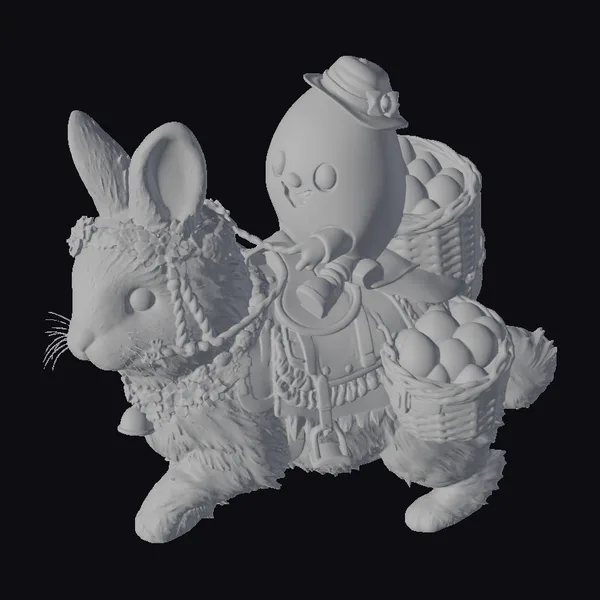 The Model “Easter Bunny Egg Rider” is also available upon request in many other 3D formats, such as 3MF, BLEND, FBX, OBJ, USDZ and others, making it easy to integrate into your project.