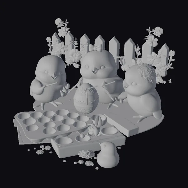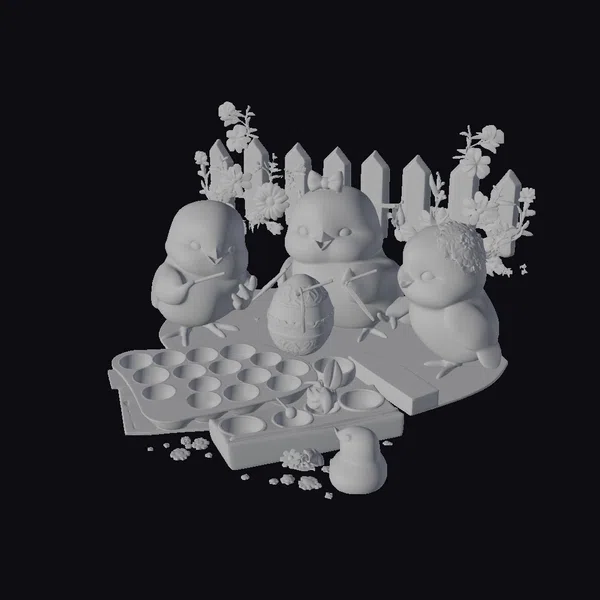 The Model “Easter Chicks Painting Egg” is also available upon request in many other 3D formats, such as 3MF, BLEND, FBX, OBJ, USDZ and others, making it easy to integrate into your project.