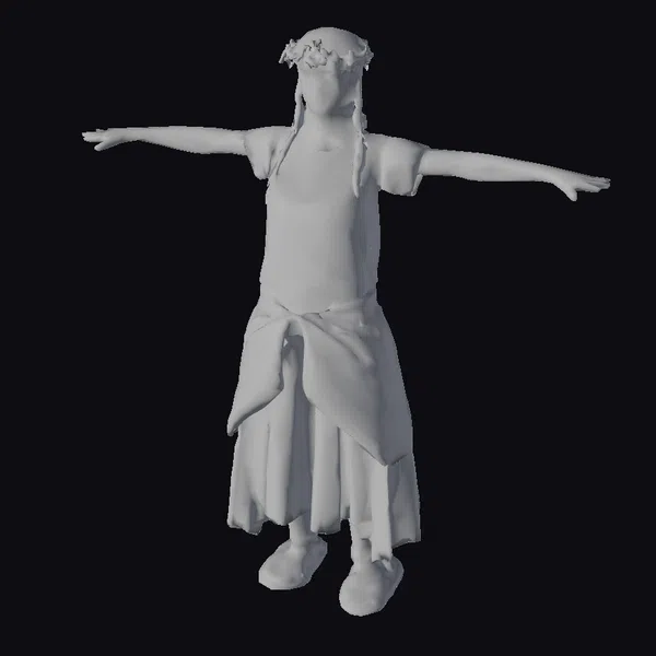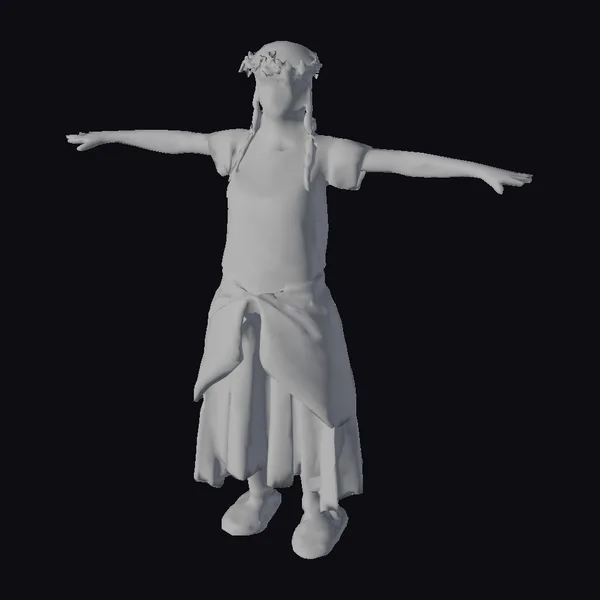 Standing tall with arms outstretched, this 3D model of a female environmental activist showcases a powerful yet serene presence. Her long brown hair is braided and crowned with a colorful floral arrangement, adding a touch of whimsy to her determined expression. The eco-friendly ensemble consists of a light-colored hemp T-shirt with a subtle green design, paired with a flowing recycled fabric skirt tied elegantly at the waist. Brown sandals complement her earthy look. This model is perfect for projects focused on sustainability, environmentalism, and eco-consciousness, suitable for use in animations, games, VR/AR experiences, and design projects that aim to convey a message of green living.