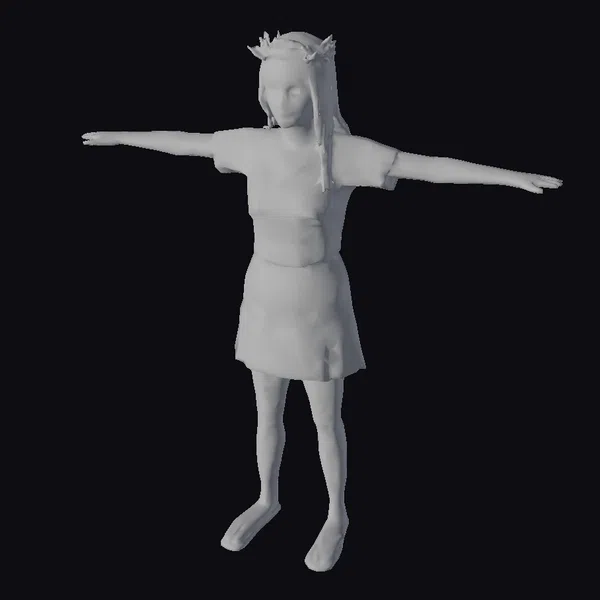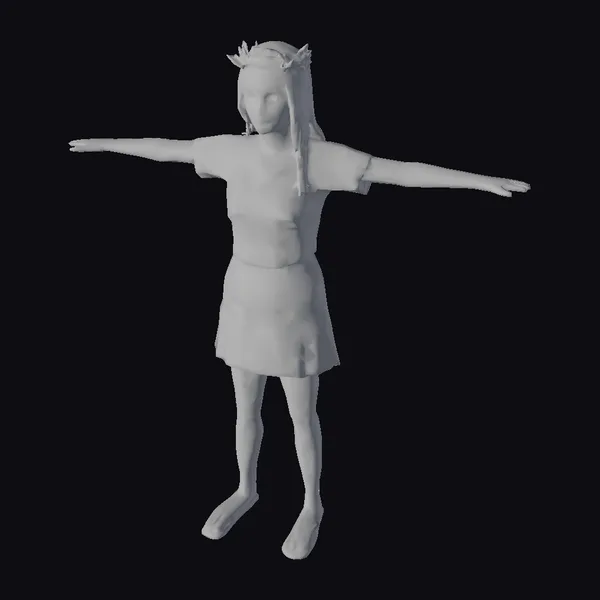 In a pose that exudes both serenity and strength, this 3D model of a young woman captures the essence of modern environmental activism. Her long brown hair flows freely, complemented by a crown of leaves that adds a touch of natural elegance to her appearance. The green T-shirt and tan skirt made from eco-friendly materials reflect her commitment to sustainable living. With arms outstretched, she seems to embrace the world, inviting others to join her in her cause. This model is perfect for projects focused on environmental themes, sustainability, and eco-friendly practices. It can be used in animations, games, virtual reality experiences, and any design project that aims to convey a message of hope and responsibility towards our planet.