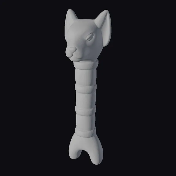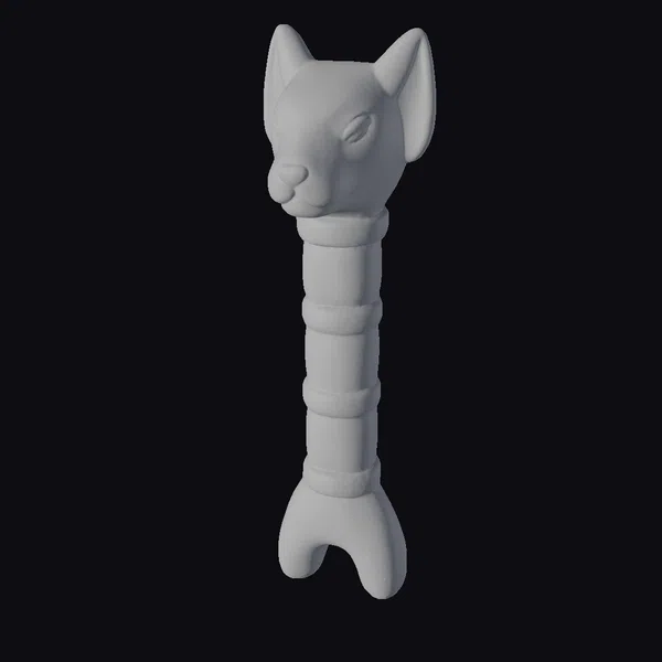 This stylized Was Scepter stands out with its feline head, adorned with pointed ears and a serene expression, as if in meditation. The scepter’s body is wrapped in five vibrant turquoise rings, adding a pop of color and symbolic significance. The chibi clay style gives the model a soft, rounded appearance, making it perfect for projects requiring a touch of whimsy and fantasy. The Was symbol, associated with ancient Egyptian mythology, represents power and dominion. The model’s unique blend of cuteness and mysticism makes it an excellent choice for animations, games, or designs seeking an otherworldly feel. Its detailed yet stylized features ensure it will add a distinctive element to any 3D environment or creative project.