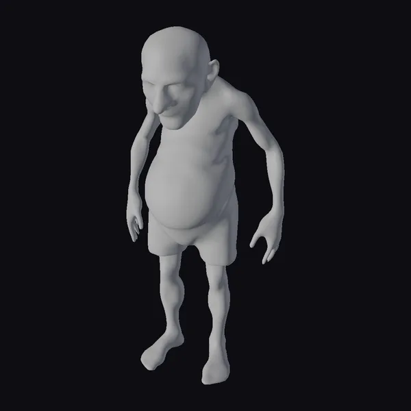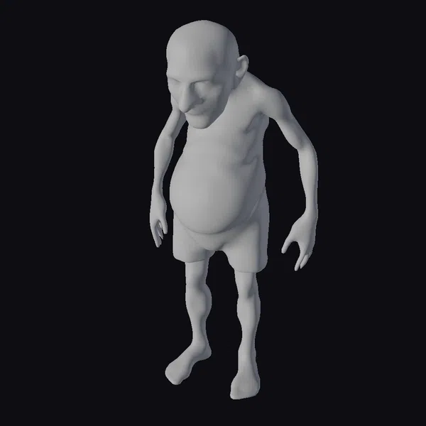 Rendered in exquisite detail, this 3D model of an elderly man captures the essence of aging with realism. He stands with a slight hunch, his shirtless upper body revealing a wrinkled, aged skin texture and a prominent belly. His short gray hair and downward gaze add to his demeanor of contemplation. The model is rigged, allowing for a range of poses and expressions, making it versatile for various applications such as game development, animation projects, virtual reality experiences, and architectural visualizations where a realistic human element is required. The detailed textures, accurate proportions, and realistic lighting effects make this model a valuable asset for creators seeking to add a touch of authenticity to their work.