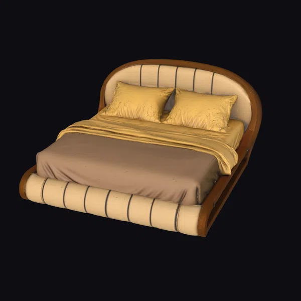 Crafted with meticulous attention to detail, this 3D model of a curved bed frame presents a harmonious blend of modern style and luxurious comfort. The bed features a sturdy brown wooden frame that complements the cream-colored upholstered headboard and footboard, adorned with vertical black stripes. Two matching cream-colored pillows and a brown sheet with a cream blanket add a cozy touch. Ideal for interior designers, architects, and game developers seeking high-quality 3D models for their projects, this elegant bed frame can be used in various applications, including game development, architectural visualization, and animation.