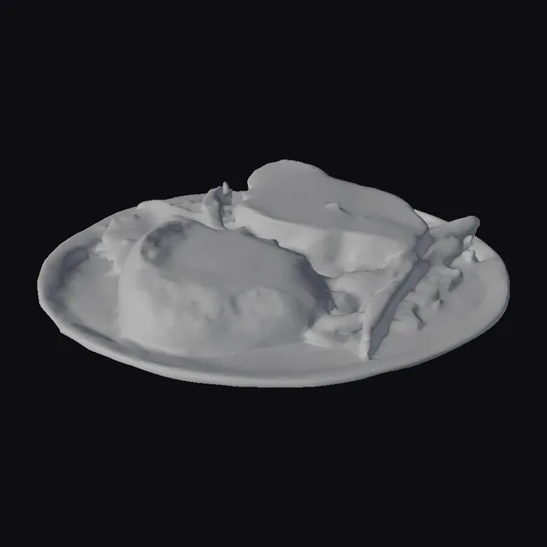 At the center of this stunning visual feast is a dinner plate, artfully arranged with two succulent pieces of meat, expertly grilled to perfection. The meat is accompanied by a medley of green beans, adding a pop of color and freshness to the dish. A generous helping of mashed potatoes provides a comforting base, while the dark brown sauce brings all the elements together, adding a depth of flavor and richness. The plate itself is elegant and refined, with a subtle sheen that catches the light. This 3D model is perfect for designers, artists, and foodies looking to bring a touch of sophistication to their projects, whether it’s for a game, animation, or architectural visualization. The level of detail and realism achieved in this model makes it an excellent choice for anyone seeking to create a compelling and mouth-watering visual narrative.