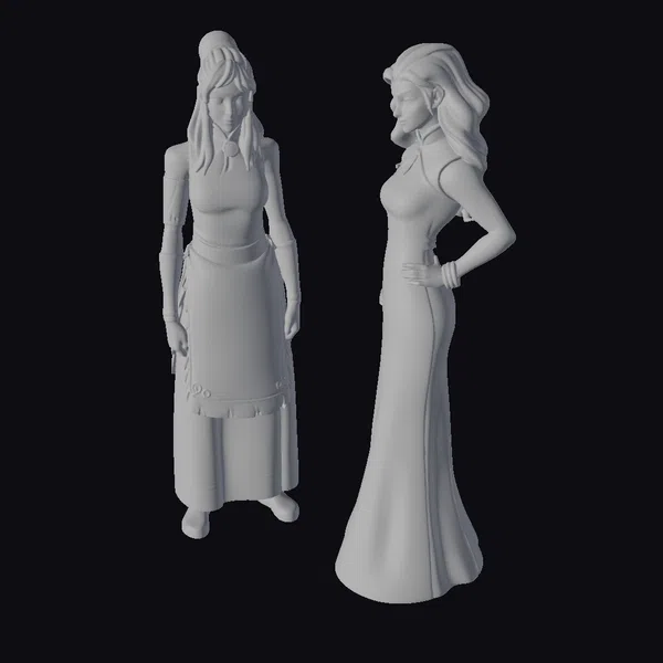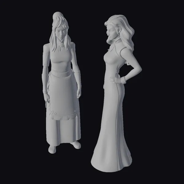 Step into a world of elegance with these two stunning female avatars, each showcasing a unique blend of style and sophistication. One dons a sleek, modern dress with a confident pose, while the other wears an armored yet elegant outfit with a hint of mystique.