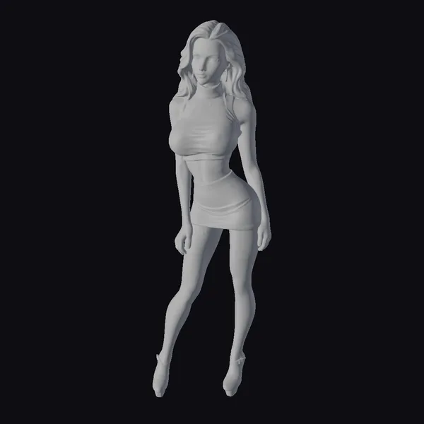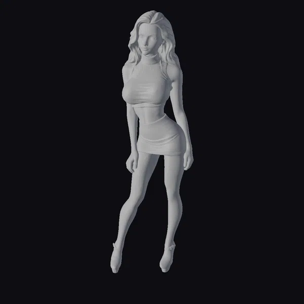 Gazing into the distance with a subtle, enigmatic smile, this 3D model of a woman exudes confidence and poise. Her long, dark hair flows down her back, complementing her white, sleeveless top and short, black skirt. The sheer black stockings and high-heeled shoes add a touch of sophistication to her overall appearance. With detailed textures and realistic proportions, she is perfect for projects requiring a lifelike character. Whether you’re working on a game, animation, or architectural visualization, this elegant female figure will undoubtedly be a valuable asset.